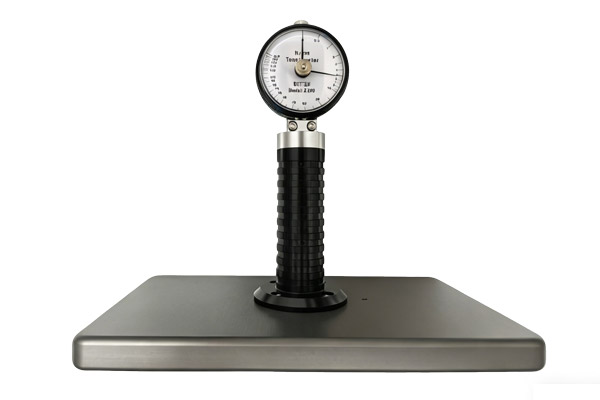 5.3 Z-200型张力计有读数指针和最大值记录惰针。使用前先把惰针沿逆时针方向拨至零位,手握仪表手柄,使其底盘逐渐压向被测网面,直到底盘的底平面全部接触实网面,指针顺时针方向转动,推动惰针至读数位置,当测试完毕取下仪表时,指针迅速回零,惰针仍停留在测量值位置不动。